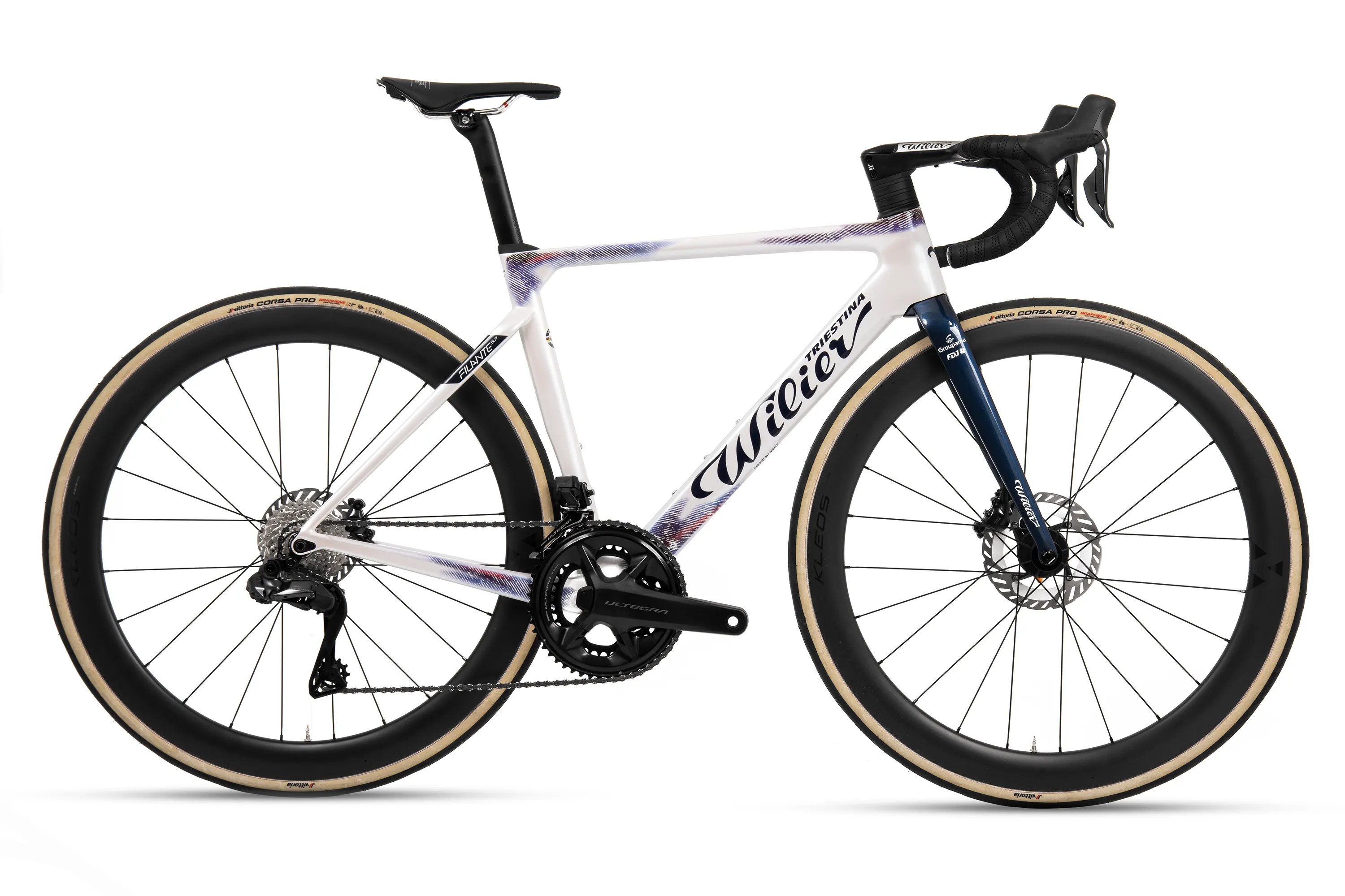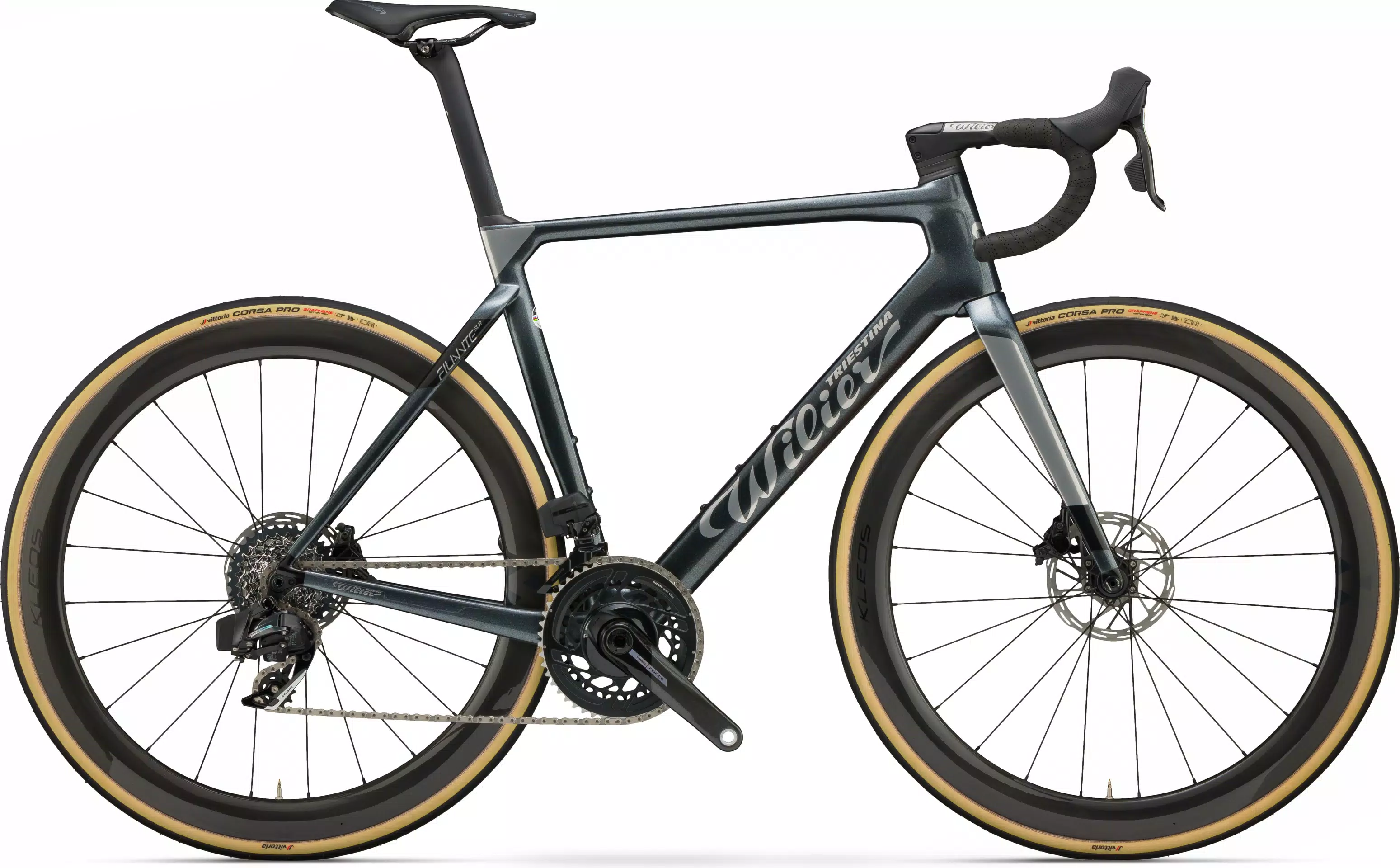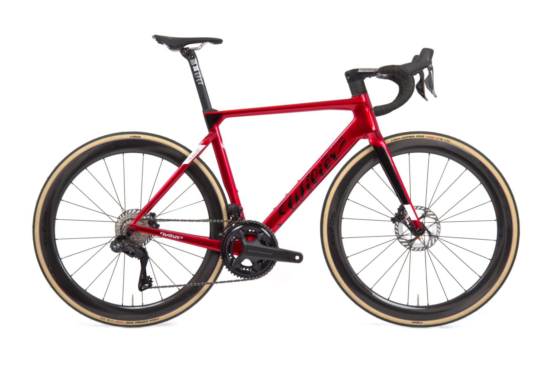 • Wilierjev integrirani krmilni sklop z zmanjšanim uporom in čisto estetiko povečuje aerodinamično učinkovitost in vizualno privlačnost.