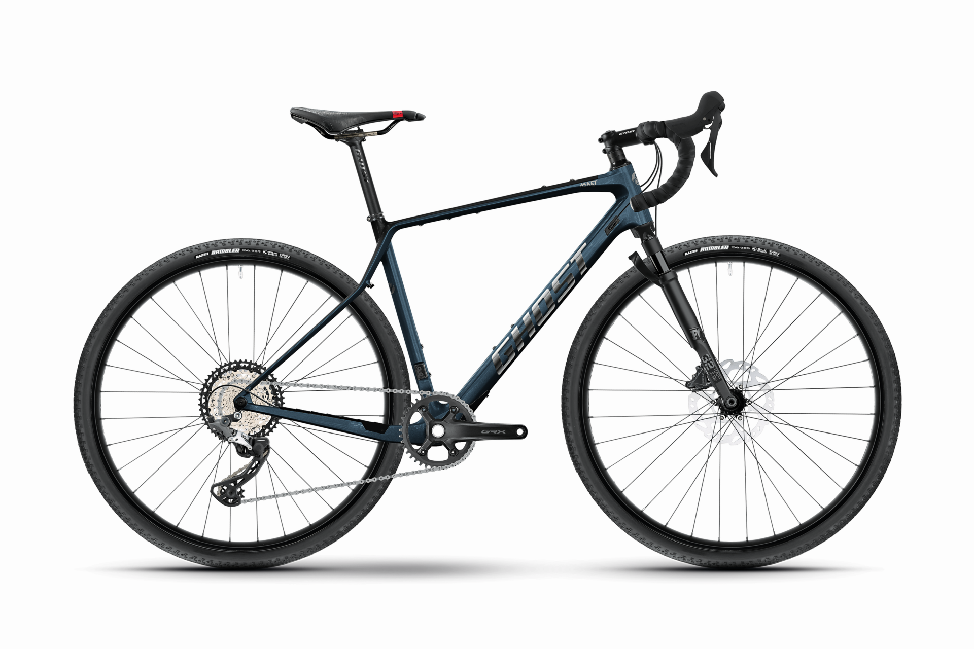 Proizvajalec Ghost je v svojo pestro ponudbo dodal prednje vzmeteno gravel kolo s karbonskim okvirjem Ghost Asket CF Full Party. Opremljen je z vzmeteno vilico znane znamke Fox 32 Float Taper Cast Performance Elite FIT4 s hodom 40 mm. Prestavni sistem Shimano GRX RX820 omogoča premagovanje še tako zahtevnih spustov ali vzponov, zavore Shimano GRX RX820 pa poskrbijo za varno ustavljanje. Geometrija okvirja je zasnovana za "touring" kolesarje, omogoča pa tudi pritrditev potovalnih torb.