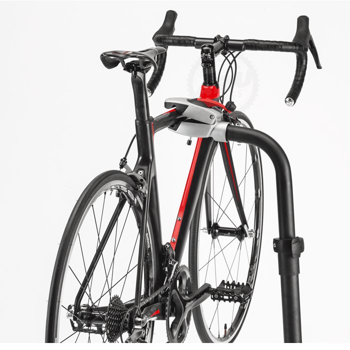 To servisno stojalo za popravila drži vaše kolo, tako da lahko na njem varno izvajate vzdrževalna dela. Združljiv je z vsemi vrstami koles, odlikuje pa ga velika stabilnost. Strah ga je pred praskami odporne sponke, ki drži okvir kolesa na mestu in jo je mogoče vrteti za 360°, da lahko na kolesu opravite številne posege, zato je to delovno stojalo idealen večnamenski pripomoček za vzdrževanje kolesa v vseh okoliščinah.