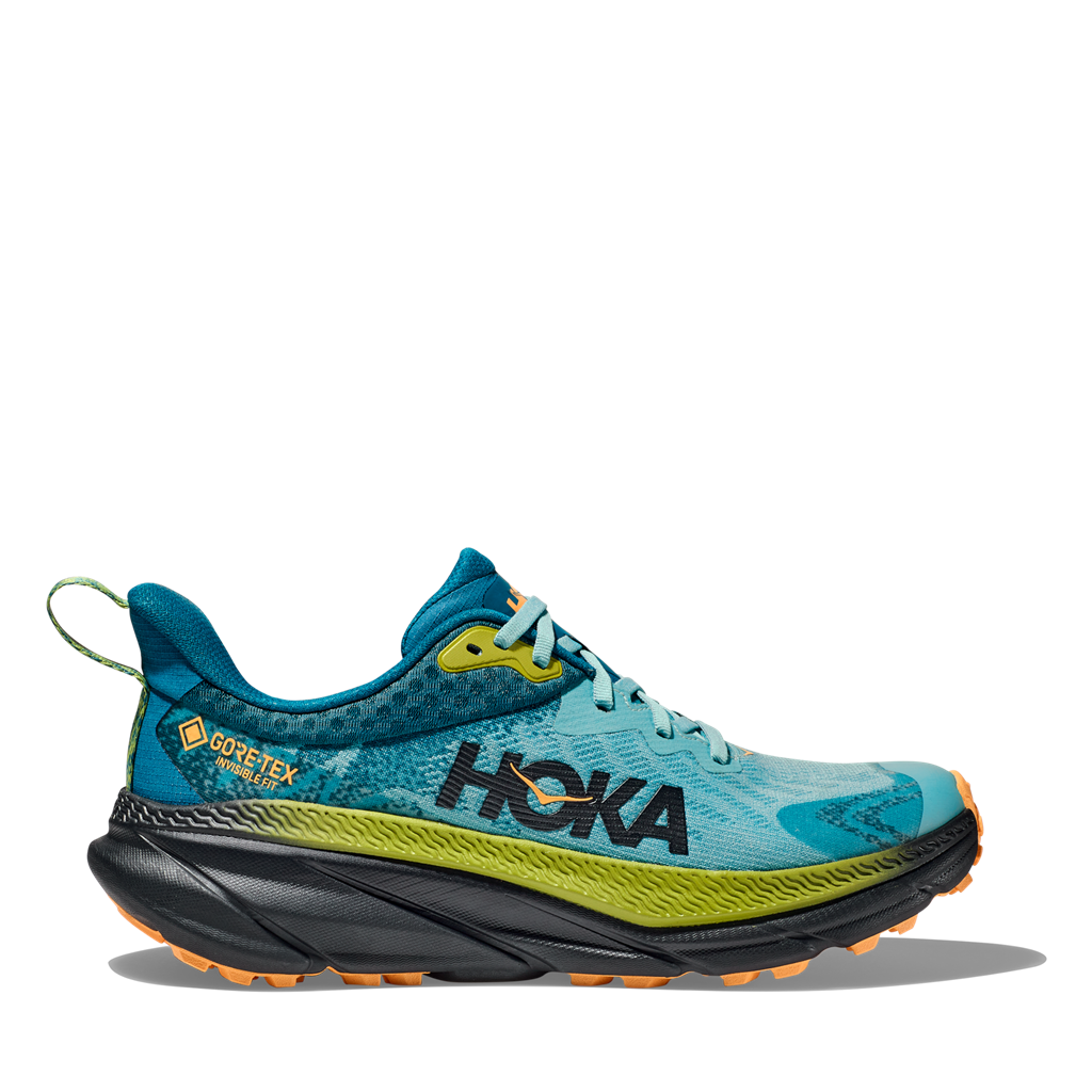 Priznan na cesti, preizkušen na terenu. Novi Challenger 7 je tako kot njegovi predhodniki namenjen presečišču cest ter stezic v naravi. Hoka ga je zasnovala čisto na novo, od zunanjega podplata do zgornjega dela copata, kjer so uporabili poenostavljeno mrežico za čim boljšo zračnost. Vmes se nahaja vmesni podplat iz nove, prijetno mehke pene, za še mehkejši in udobnejši tek pa smo cel copat povišali za 2 mm. Zunanji podplat je opremljen z našo patentirano trpežno gumo Durabrasion, ki se zelo dobro odreže na asfaltu, še bolje pa v naravi. Dodali so še GORE-TEX INVISIBLE FIT s tehnologijo izdelkov iz recikliranega materiala za boljšo zaščito v slabem vremenu. Spremenjen je bil tudi sam dizajn zunanjega podplata in prepričani smo, da gre za Challenger z najboljšo tekaško izkušnjo do sedaj. Navdih so bile gume gravel koles, tako da smo za boljši oprijem na neravnem terenu manjše, bolj skupaj pozicionirane čepe postavili v center copata ter večje, bolje agresivne čepe bolj proti robu.